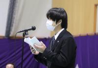 ホーム担任の呼名の後、34H松崎亮太さんが310名の卒業生の総代として卒業証書を受け取りました。25H野田蓮さんが在校生代表として送辞を、36H石川裟紅良さんが卒業生代表として答辞をよんでおります。ご祝辞をいただきました井波秀俊PTA会長様、式にご列席いただきましたPTA役員の方々、そして卒業生の保護者の皆様方、今日は本当にありがとうございました。