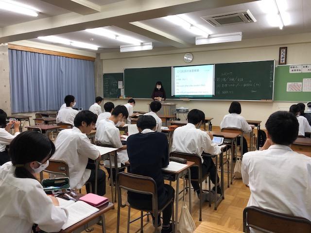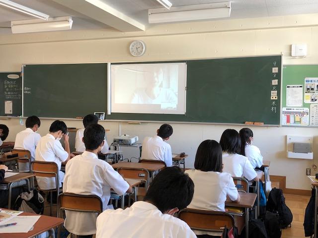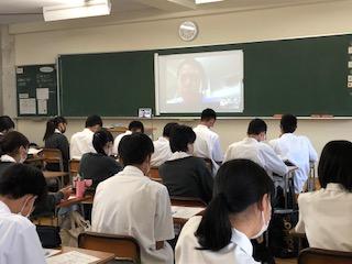 本日、1年生を対象に『外務省高校講座』を開催しました。コロナ禍なので、リモート(Zoom)で実施され、生徒達は各教室でスクリーンに写し出された講師のお話しを伺いました。