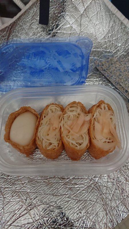 そうめん弁当のバリエーション。「そうめんいなり」&「ゆでたまいなり」自家製しょうが漬を散らして。おいなりさんの甘い味付けと相まって。酢飯じゃなくて、そうめんを入れるだけ。ゆでたまごも、ゆでてから、ジップロックに「プロだし」を薄めた出汁とともに入れて、一晩寝かせたもの。おためしあれー。見た目以上に。ボリュームあります。おなかに、どーん!ラーメンネタからのソウメン、お粗末でした。