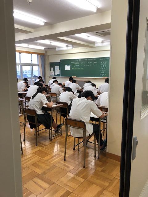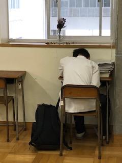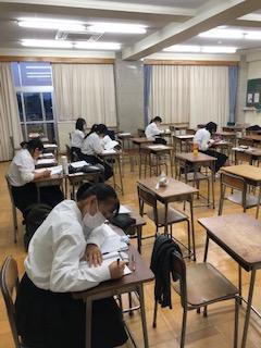 そして3年生。本日マーク型模試が実施され、1教科2科目が行われました。教室はしーんと静まり、生徒たちは皆、前傾姿勢で、集中して問題に取り組んでいました。模擬試験は明日も行われます。終了は夕方5時頃。長い1日となりそうです。最後までがんばれ!