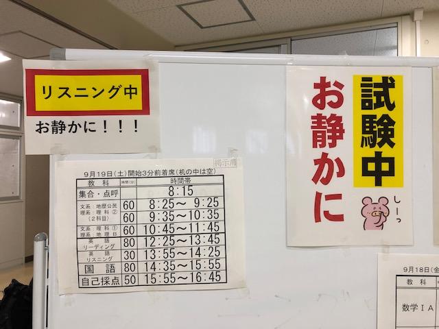 【お知らせ9/18】生徒・保護者の皆様へ ~2学期中間試験時間割発表~