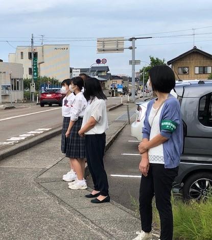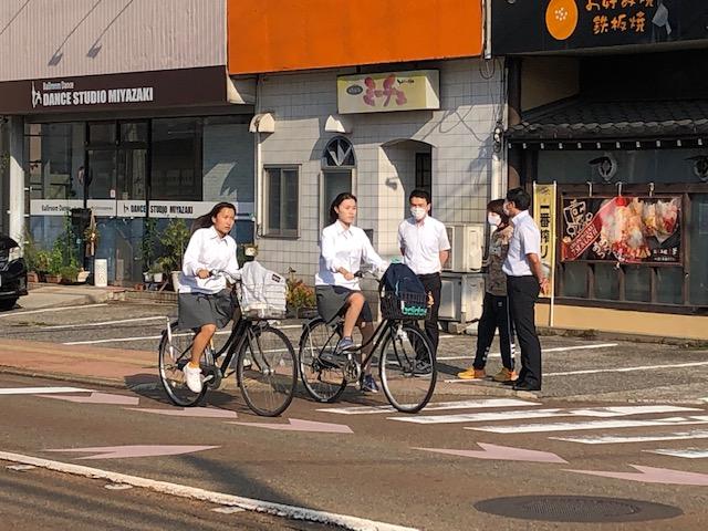 昨日より秋のグッドマナーキャンペーンが行われています。コロナ禍のために今年度初めての実施で、中学校・高等学校の生徒、保護者、教員等約120名(2日間の合計)が参加しています。活動の内容は、生徒玄関前や学校近辺の交差点に立ち、あいさつ運動や自転車の交通安全指導等を行うものです。本日は特に、”誉れや”前横門付近での自転車の走行マナー等について意識させる指導が行われていました。高校からは生活・交通安全委員が参加し、玄関前で登校する生徒へ挨拶をしていました。スタート時(7:40)からさわやかな天気にも恵まれ、少しひんやりした空気のなか、生徒や保護者の方々の元気なあいさつが続けられ、気分よくまた新たな一日をスタートさせることができるよう感じられました。ご参加いただきました中高PTAの皆様方、本当にありがとうございました。