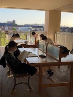 購買の周辺にはいくつかのテーブルが置かれ、放課後などにはジュースを用意してゆったりと勉強をする姿も見られます。さらには、外側にはテラスが広がっており、天気の良い日には、心地よい風を受けながら友達と語らったり勉強したりする生徒がいます。ここが「思い出スポット」になっている生徒も多いのではないでしょうか?