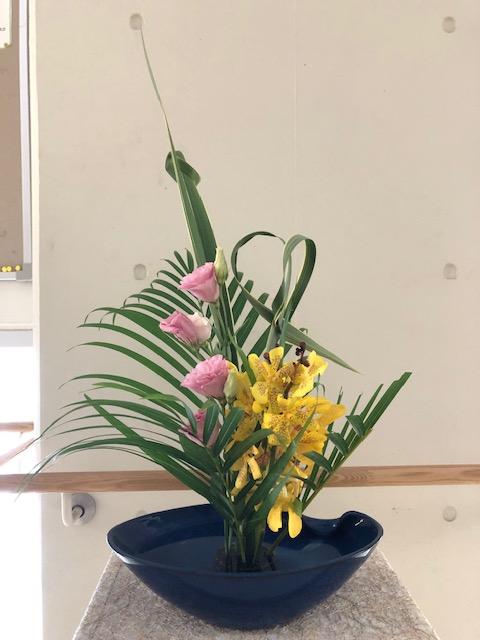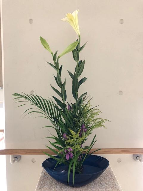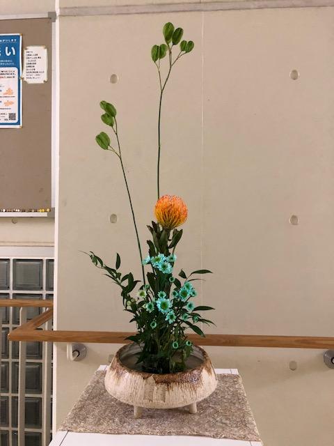 本校の中央階段の踊り場には、華道部の活動日に素敵な生け花が展示されます。今日は、9月中に飾られた花々をご紹介します。筆者は、時々足を止めては花々を眺め、心の安らぎをもらっています。小さな花でもその中をのぞいてみると、微妙に色が変化していたり、なんとも不思議な形状をしていたりと、自然の「魔法」を感じる時があります。どうぞご鑑賞下さい。