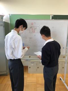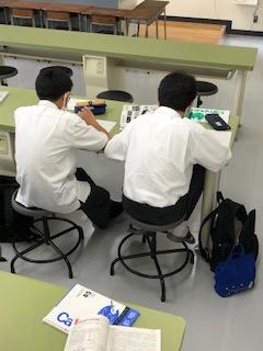 本日の放課後の物理実験室では、10月17日(土)に行われる「いしかわ高校科学グランプリ」に向けて、筆記競技に対する勉強会を行っている2年生たちの姿をみることができました。彼ら彼女らは、”昨年の44チーム中総合第4位(筆記競技7位、実技競技2位)という成績を超えたい”という高い意識をもって頑張っています。ライバルはSSH(スーパーサイエンスハイスクール)校の2年生たちになるのでしょうが、過去の自分を超えられるよう、当日は最大限に自分たちの力を発揮してくれるよう願っています。