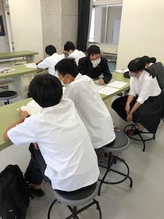 火曜日7限目は2年生の課題研究の時間です。本日は9月までのまとめのプリントを提出する日でした。今日までの活動を振り返って、設定された目標に向けてどこまで進んだのか、次にすべきことは何かを確認し合い、これまでの活動において何を学んだかを一人一人が考え、まとめました。グループ担当の先生の他に、北村先生からのお話しもあり、すでに1回目のフィールドワークを終え検証に入っている班があったり、次の調査場所に改めてアポイントメントをとったりする班もありました。また、面白い独自のプランを学校に提案して承認をもらい、来週実施予定の段階に入っている班もあるようです。それぞれが話し合い、プランを練って、実行に移していっているようです。どのような結果・結論にたどり着くのか、今から楽しみです。探究活動は来年2月まで続きます。