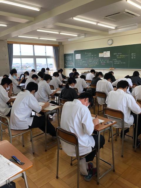 今日は1学期期末試験の最終日、1年生は数学、その後に学年集会、2年生は数学と保健、3年生はLC発展と数学または世界史/日本史、その後進路講演会という日課でした。