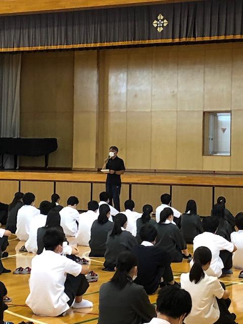 1年生では試験終了後に学年集会が行われ、生徒指導課の宮岸先生より、SNSの使い方に関する注意事項が改めて伝えられました。「1日の限定公開だから、大丈夫」と思ってクリックしてしまう前にもう一度考えて欲しい、画面の向こうにはそれを見て不快に思う人がいるかもしれない、そういった人たちの「痛みに思いを馳せられる人」になって欲しい、とお話しされました。1年生は初めての「18歳成人」の学年となります。本校在学中に、成人としての心構えを学ぶだけでなく、人として思いやりにあふれた人になって欲しいと思います。
