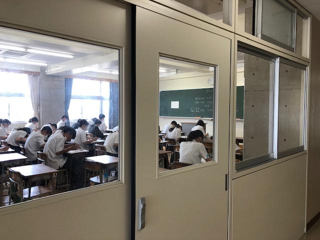 期末試験3日目が終了しました。本日は1年生が現代社会と保健を、2年生が生物基礎/地学基礎(文系)または物理基礎/生物基礎(理系)と現代文とコミュニケーション英語Ⅱを、3年生はコミュニケーション英語Ⅲと世界史特講/日本史特講(文系)または化学(理系)と公民特講/日本史特講(文系)または地理B(理系)を受験しました。ようやく残り1日となりましたが、生徒たちには気を緩めずに最後まで頑張ってほしいと期待しています。