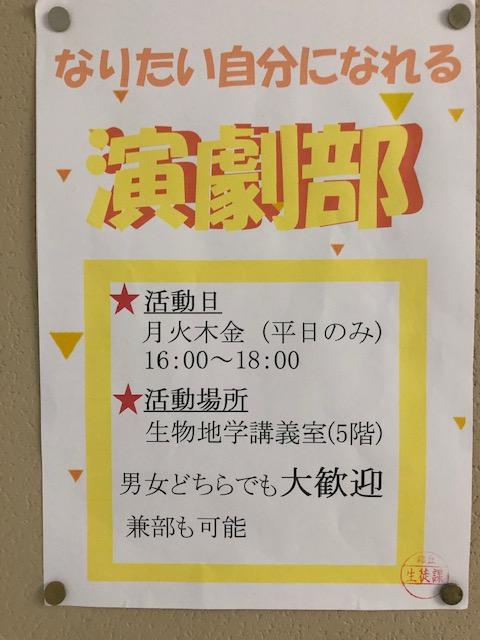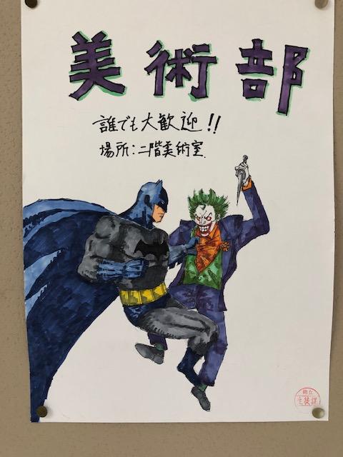 中央階段を昇って行くと、踊り場に部活動勧誘ポスターがたくさん貼られています。今日は、部員たちが作成した勧誘ポスターをみなさんに見ていただこうと思います。どれも力作です。