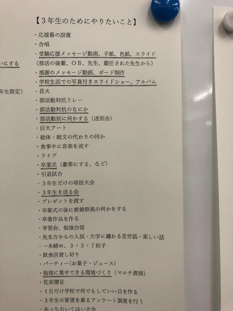 本日の放課後も、生徒会室では、総務委員たちによる"3年生のためにやりたいこと”などを検討する運営企画会議が行われていました。