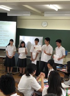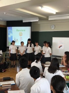 午後は本日のプロジェクト「東京オリンピックのボランティアについて」に取り組みました。ファシリテーターのジョンさんの上手な進行で、生徒たちからたくさんの意見がでていました。また、プレゼンテーションの場では、生徒たちの声やアクションが大きくなっており、皆の笑いまでとれるようになったグループが現れています。