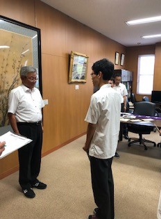 本校の写真部が8月11日(日)に開催された民家の甲子園で優秀賞を受賞しました。本日はその報告会を校長室で行いました。校長先生は賞を受賞した生徒たちに祝福の言葉を述べ、今後の活動に対しての期待を寄せられました。写真部の生徒たちは誇らしげな表情を浮かべて校長先生との会話を楽しみました。