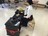 茶道の心得についても、「和敬清寂:和・・・お互い仲良くすること、敬・・・お互い敬い合うこと、静・・・見た目だけではなく心の清らかさのこと、寂・・・どんな時にも動じない心のこと」2年生が意味をそらんじてくれました。