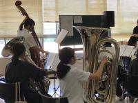 午後、大会議室では明日、津幡町文化会館シグナスで開かれる吹奏楽演奏会に出場する吹奏楽部が練習をしていました。部員は35名。新体制となって初めてとなるステージでは、「吹奏楽部のためのエール・マーチ」と「Boom!」を演奏します。