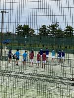県高校総体男子テニス大会が城北市民テニスコートで行われています。第2シードとして臨んだ男子団体は、最後まで気持ちを切らさず決勝まで勝ち残ることができました。明日の決勝戦では、第1シードの金沢高校を相手に、全力で戦ってきます。