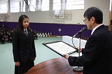 卒業式の前日である今日3月3日(火)の午後、皆勤賞授与、生徒会功労賞表彰、学校長特別賞授与の各表彰式が行われました。