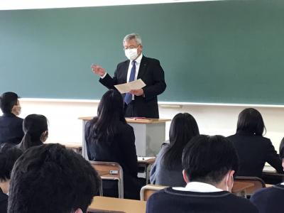 今日の午前中、「卒業生と語る会」が開かれ、3月2日に卒業した先輩7名が、これから進路実現を目指す在校生に対して、たくさんのアドバイスをしてくれました。密を避けるため、学年を分けて行われた4回の講座で、卒業生たちはそれぞれの学年に応じた内容を伝えてくれました。1,2年生は重要なポイントをメモしたり、うなずいたりして、真剣に話を聴いていました。