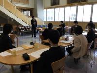 1、2年生の学年末試験が終了しました。放課後の部活動も、今日は降雪ということもあり短時間で終了です。高校生が試験をしている中、中学校では、昨日に引き続き中高接続授業(ブリッジ授業)が行われていました。今日は本多先生の『今昔物語集』の「阿蘇(あそ)の史(さかん)」を題材にした3回シリーズの1日目の授業です。史(さかん)は、令制の四等官の最下位の地位の「主典」(さかん)のうち、神祇官、太政官のこと、主に文書の作成や公文書管理などをつかさどる役人のことです。主人公の阿蘇の某(なにがし)という史(さかん)のユーモラスな行動について、読み解いていきます。