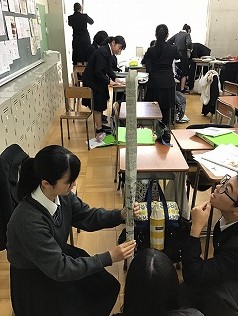 1月24日(金)7限目に、1年生は、先週2度目となる、より高さのあるペーパータワーをつくる競技を行いました。製作の条件は1回目とは少し変わり、①新聞紙を2枚まで使えること、②紙は折り曲げたり切ったりしてもよいが、のりやセロハンテープなどは使用しないこと、③作戦タイムは設けないので、事前にグループで構想について考えておくこと などになりました。生徒たちは、2回目ということもあり、スムーズに相談と作業を進めながら、見事、安定して自立するタワーをつくりあげていました。担当の先生からは「紙が柔らかいことを受けて、紙を折り込んだり、編み込んだりして強度をだすなどの、前回はなかった新しい工夫が見られ、この取組をやってみて大変良かった。」という感想がありました。さて、次は、どんなテーマでの競技?が行われるのでしょうか??なお、記録については、以下のとおりでした。(( )内は1回目の1位チームの結果です。紙質が悪くなっても、記録を大幅に更新できたクラスが目立ちますね
