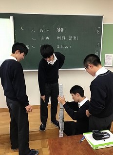 錦高日記1月27日(月) ~1年生 高いペーパータワーをつくろう!②~