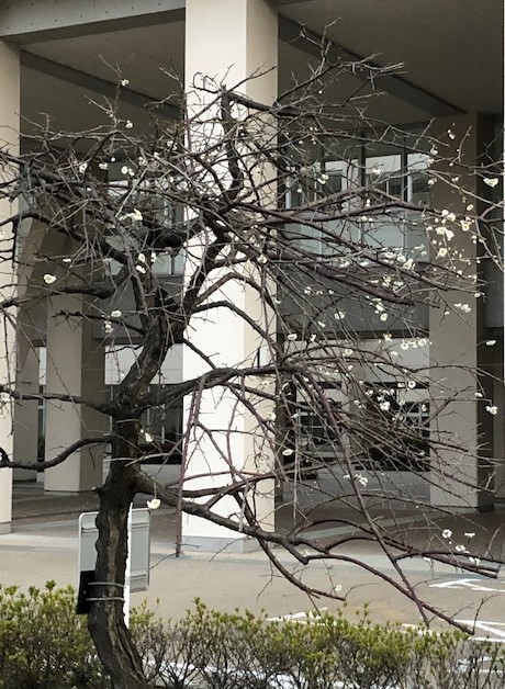 さて、本校駐車場の奥、駐輪場の左横、生徒玄関に近いところに、2本の紅と白の梅の木が植えられています。この暖冬のせいなのでしょうか?先週末くらいから、早くも白い梅の花が咲き始めているのです。(赤い方は”しだれ梅”なので、咲くのはまだ先のようです。)花が満開となったら、再度ご報告させていただきます。