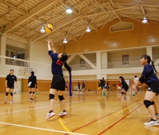 錦丘高校の女子バレー部は毎日活気に満ちています。練習は全員が真剣な表情で取り組み、大きな掛け声で互いに励まし合っています。全員が力を合わせて試合をする姿はとても魅力的です。総体で一つでも多く勝利することを目標に今日も練習に励んでいます。