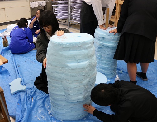 錦丘高校の美術部は、総文に出すための絵を描いたり、共同で立体製作をしたりしています。部員同士の仲が良く、協力して活動しているので、毎回素晴らし作品が出来上がります。美術部が創るこれからの作品をお楽しみに~!