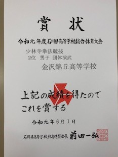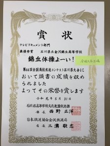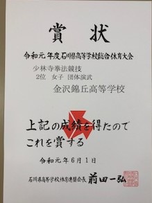 今後の上位大会に進めた部・同好会の主な大会成績を紹介します。少林寺拳法部は、男子団体演武及び女子団体演武で第2位となり、北信越大会に出場します。個人種目でも、33H飯田莉帆さん、同近藤愛香莉さん、34H北川円香さん、22H桶作花凛さん、23H益野勇魚さん、24H熊田大晃さん、26H西村涼太さんが入賞しています。男子新体操では、18H穴田和希さんが個人総合1位となり、インターハイに出場します。書道部では、34H澤崎愛叶さんが最優秀賞を獲得したほか、入賞した34H澤崎夢叶さんが全国総合文化祭に参加します。放送部では、テレビドキュメント部門で最優秀賞を、創作ドラマ部門で優秀賞を獲得し、全国大会に出場します。個人でも朗読部門で24H喜多陽花さんが、アナウンス部門で26H伊藤樹紀さんが入賞しています。さあ、皆さん、もうひと踏ん張りです。