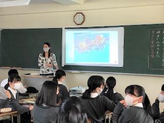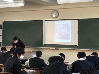 昨日の放課後、参加予定者と引率予定教員が一同に介して、その事前学習会を行いました。講師となったのは、県立大学1期生でもある14H担任の礒野先生です。先生は、県立大学の紹介動画を使いながら、大学の特色や将来へのビジョン、また当日の予定・実験内容や注意点などについて指導しました。当日は1日の長丁場となりますが、感染症対策を科学的にきちんと行うとともに、将来の「なりたい自分」を見つけるための学びをしっかりと行ってきたいと思います。