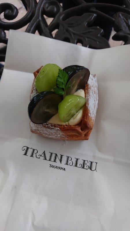 写真は季節のフルーツが乗ったデニッシュ。高山のパン屋さん「トラ〇ブルー」お得意の一品!全国のファンがここのパンを買いに。常に行列ができる名店。いつ行っても新作があるので、ついつい買いすぎてしまいます。どれも見事に「まいう~」!太鼓判です!