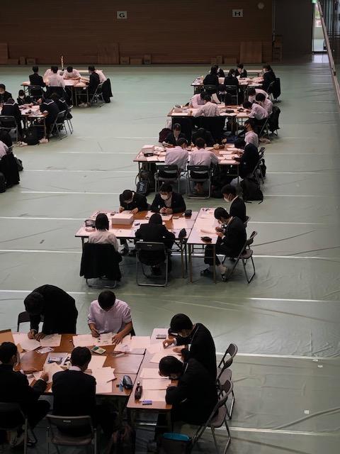 また、教室では大学進学を志す全国の3年生ほぼ全員が受験する記述型模試を受ける真剣な面持ちの3年生たちをみることができました。本日の受験科目は数学、高校3年間のなかでは最も難しく、かつ最も広い範囲からの出題となっていたはずです。彼ら彼女らが、落ち着いて自分の力をすべて発揮できたことを期待してやみません。試験は明日まで行われます。3年生気張れ!!