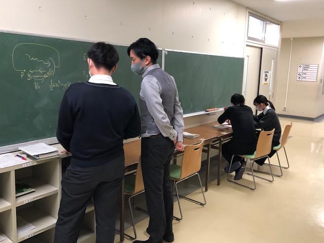 本日の午前中も、物理講義室には3年生有志たちが集まり、物理の共通テスト対策の学習会を行っていました。(この後、化学の学習会も行われています。)今年度の3年生理科は、学校の臨時休業期間の影響もあり、例年より演習を行った時間がやや不足しました。また、演習を行っていても、共通テスト対応の問題が思考力等を測れるものとなっているため、1問を解くのにも解説を行うのにも例年よりも時間がかかりました。このような時期の学習会は、日頃の授業より長い時間をかけて問題を解くことができ、しっかり解説まで行うことができる、我々教員にとっても貴重な指導の時間となります。