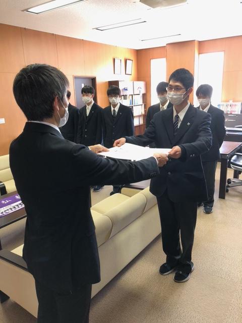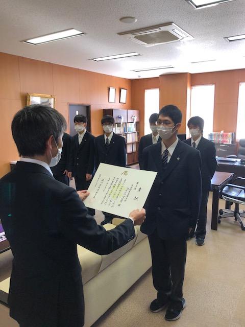 本日のお昼休みに、今年度2度目の『部活動激励費授与式』が校長室にて行われました。