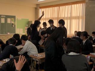 6限はいよいよ発表です。それぞれのグループがそれぞれの場所で一斉に発表をしました。昨年は体育館で学年全体でポスターセッションを行いましたが、今年は感染症予防のため16教室に分かれて実施しました。聴衆が少なくなってしまうので発表者としては少し残念だったかもしれませんが、その分発表者の考えがしっかりと伝わり、質疑応答も充実していました。