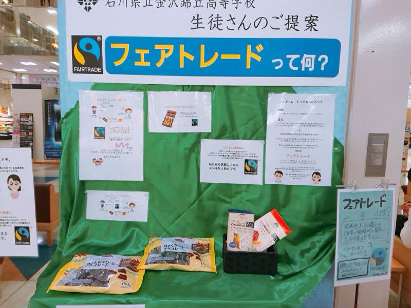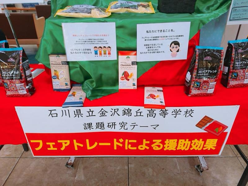 現在、イオン杜の里店とバロー松任東店の2カ所の店舗には、生徒たちが作成したポップ・説明文書とともに、フェアトレード商品のコーナーが設けられています。もし、お時間がありましたら、足を運んでください。(協力店舗の商品も買っていただけますと、なおありがたいです。)
