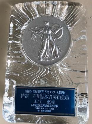 さて、令和2年度石川県学生写真コンクール特別展において、本校写真部の16H五宝悠希さんの作品『試験勉強』が特選・石川県教育委員会賞を受賞しました。この大会は県総合文化祭写真部門の代替大会の位置づけとなっており、出品された作品には3年生のものが多いようです。1年生で上位入賞者の中にくい込むことができたのは素晴らしい結果となりました。12月12日(土)の午前中に北国新聞会館にて表彰式が行われています。