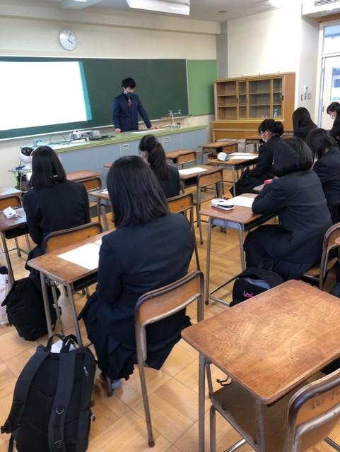 また、実験の間には先生から”実験実習で大切なこと”、””高校と大学との学びの違い”、”県立大学生の魅力”など、今後の進路選択や学習を行っていくうえで、大変役に立つお話をしていただきました。