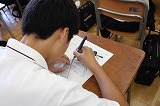 冷房の効いた教室で本校教員による30分間の模擬授業が実施されました。