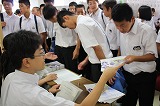 学校長らによる説明会の後、校舎見学、30分間の模擬授業、部活動見学などを体験してもらいました。