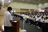 約600名の中学3年生が訪れ、2班に分かれて時間差をつけ2回行いました。