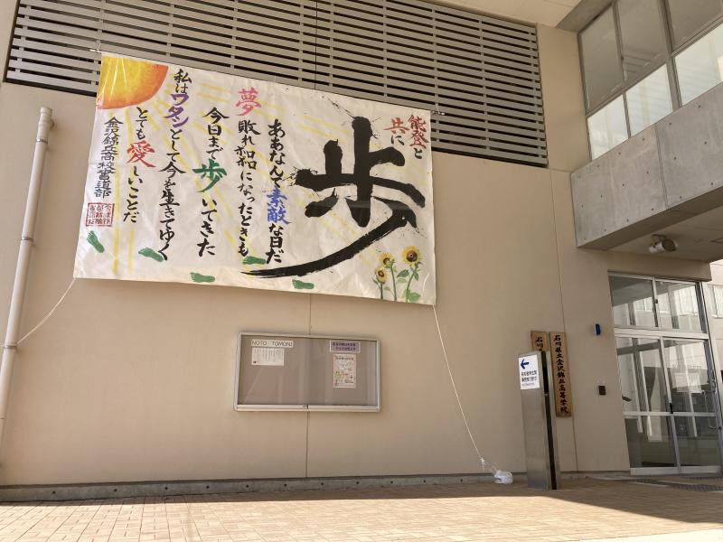 今年の紫錦祭で書道部が披露した書道パフォーマンス「能登と共に歩む」。
