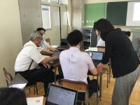 GIGAスクール校内研修リーダーの宮田先生から「今回、たくさんの方々に参加を頂き感謝に堪えません。他校は早いところでは中間考査の5月の中旬に職員全体での研修を実施しているところがあり、早い学校より1か月遅れているように思えますが、実際には何人もの先生が既に授業実践を行っており、授業イメージを持ちながら、センターの方々のお話を聞けたのではないでしょうか。また、色々な場面で先生方同士の教え合いも行われており、これは5月ではできなかったことでしょう。今回、学校長をはじめ、GIGAスクール対応研修の対象でない方々にも参加を頂けたことは、GIGAに対する教員の共通理解を深める意味でも良かったと思います。誰かにやれと言われて仕方がなくChromebookを使うのではなく、より教育効果を考えて教員が自然に活用することになるような教員文化ができれば良いですね。」というコメントをもらいました。