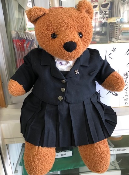 ところで、”購買のクマ”改め”にしき丸すみれ”もしっかり衣替えを済ませていました。公表がおくれましたが、彼女の名前”にしき丸”の所以は「本校のアイドル熊であること。熊の名前なら『~丸』が似合いそう!(命名者の解釈)」「全部のパーツが丸いから(学校長)」、”すみれ”の所以は「本校のスクールカラーがすみれ色だったから。」ということだそうですよ。