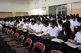 講師は進路主任で、これまでの本校の合格実績、全国の国公立大学、最近の入試問題の傾向を踏まえ何をしなければならないか、文系理系の選択についてなど、1年のこの時期に知っていてほしいことばかりでした。