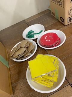 2階の講義室GHにおいて「人生ゲーム」を思案中。机をならべてどうするのかな?