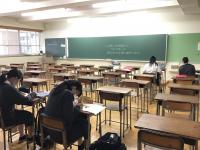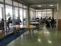 明日が、期末試験最終日。今日も色々な場所で生徒のみんなが勉強しています。昨日、2階の勉強場所を紹介することを忘れていました。購買前と講義室Aです。購買前には外に面するベランダがあり、外気を感じながら勉強できます。この場所は生徒同士で教え合うことも可能です。その近くにある講義室A。ここは、おしゃべり厳禁です。みんな静かに自習をしていました。今日の校舎はどこも静かです。でも、明日の午後には、部活動をする生徒の声が校舎や体育館、グラウンドに響いていることでしょう。