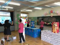 会場内へ入ると、そこはもう「マリオの世界」!力作のアクティビティと、お揃いのバッジをつけた28Hが待っています。今日はたくさんのお客さんが、来てくれました。チームで新記録を狙います。明日も、たくさん来て下さいね。
