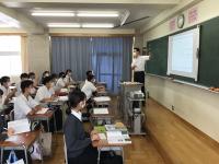 県内全校種の「若手教員早期育成プログラム」を受講している教員が、マスター教員である本校の寺井教諭が担当する、2年生の地歴公民科「世界の気候区分(熱帯の自然と生活)」の授業を参観し、授業力の向上を図るために、指導のテクニックなどを学んでいました。