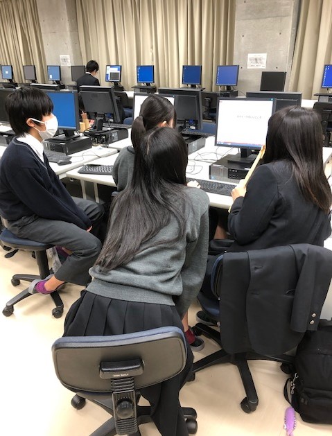 本日放課後に情報室をのぞいてみたところ、文芸部や新聞部などの皆さんに混じって課題研究のポスターをつくるために奮闘している2年生が多く見られました。ポスターは本来マーカーなどを使って手書きすることになっているのですが、グラフを作成したり、絵を入れたり、よりきれいなものを作成しようとしたりして、この場所に集まっていたようです。我々教員は、生徒たちの自主的な活動を基本見守る、尋ねられれば的確にアドバイスする、作業しやすいよう環境を準備・確保しておく、などというスタンスで、彼ら彼女らの探究活動を支援し続けたいと考えております。